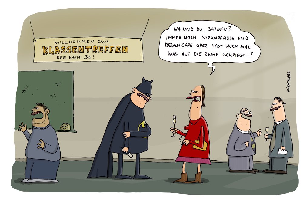 Habe selber keine persönlichen Klassentreffen. Auch wenn mich schon mal interessieren würde, wie einige von den Leuten von damals die Dinge heute so sehen. Schließlich wollten wir als Jugendliche natürlich alles anders und „besser“ machen …
