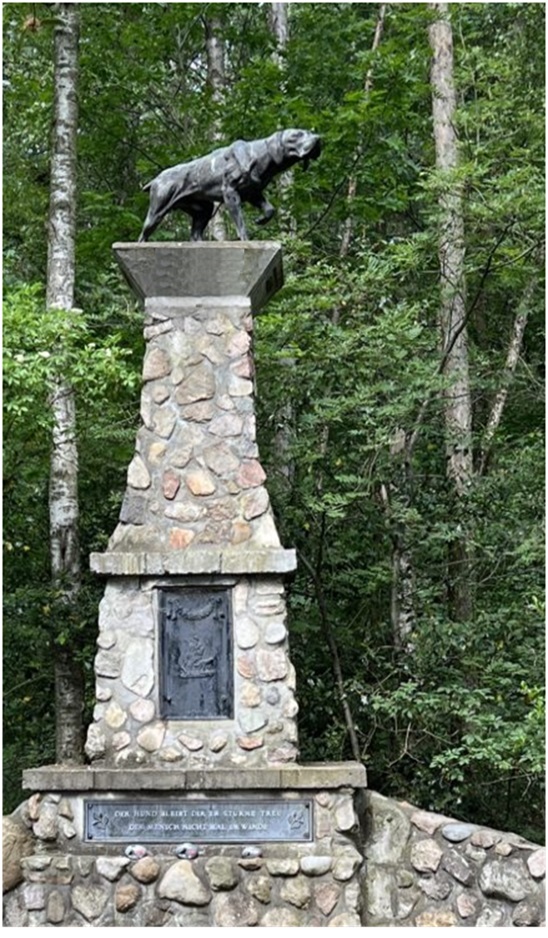 „Verschuldet hat das sozusagen die Entwicklung über die Jahrtausende, wo Verhaltensregeln von Rudeln von Generation zu Generation weitergegeben wurden. Es will ja nur sagen: hier habe ich die Oberaufsicht, hier bin ich sozusagen DER Leithund. Haha. Bitte verzeih mir dieses Wortspiel, ich bin ja nur ein Schäferhund, aber na ja, wir Rüden orientieren uns halt gerne an Größen der Vergangenheit!“